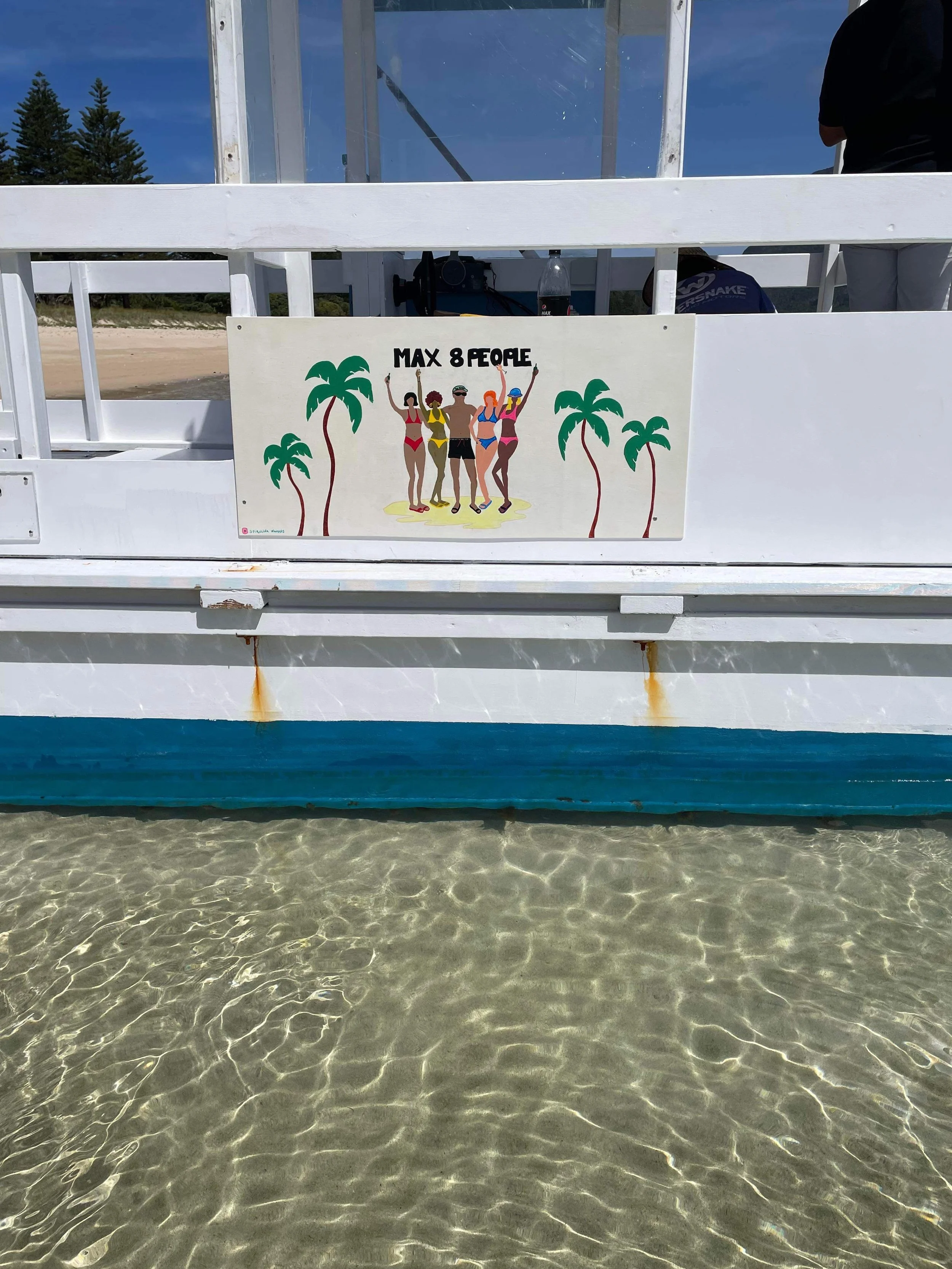 Perry Ferry owner boat, it is acrilic on white wood, finished with a layer of Satin vanish to protect it from the sun, ocean salty water and rain.